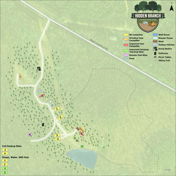 Nestled in the heart of rural Clay County, Alabama, Hidden Branch Campground is a serene and rustic haven that beckons nature enthusiasts and outdoor adventurers seeking respite from the urban hustle. This tranquil retreat features four spacious RV campsite lots, each equipped with 20/30/50 amp hookups and water to ensure a comfortable camping experience amidst the beauty of nature. Additionally, four tent/primitive sites cater to those seeking a more traditional camping experience.